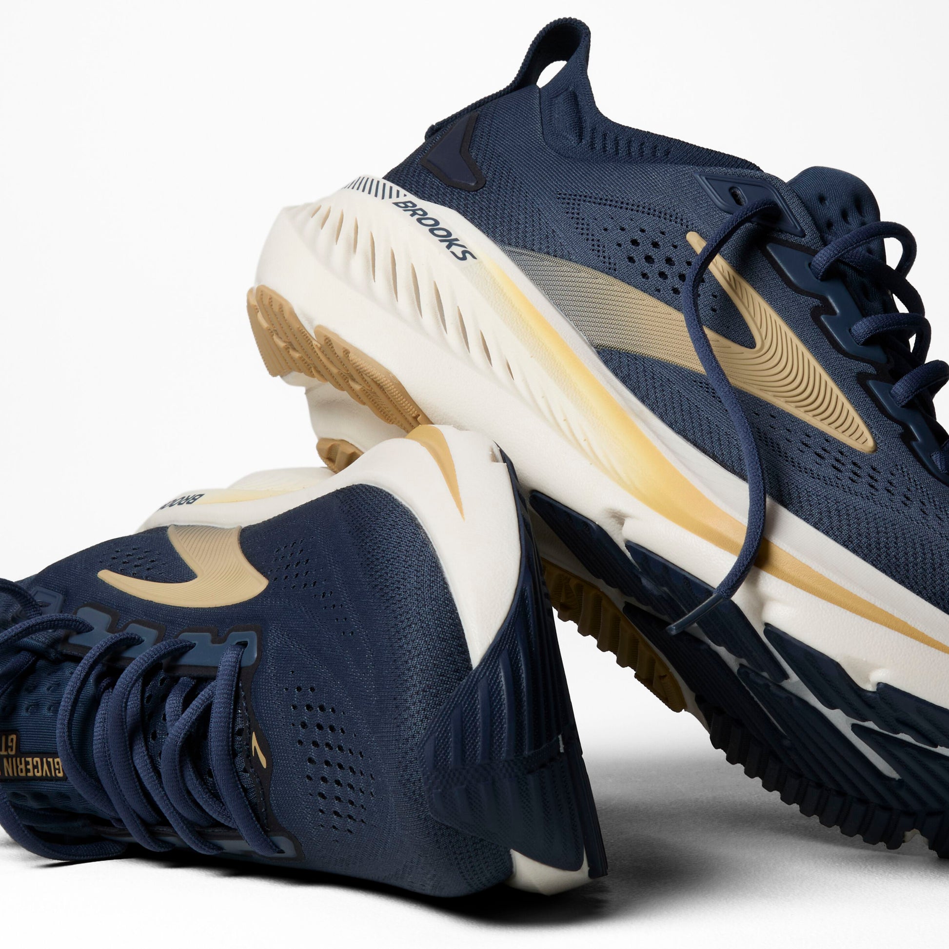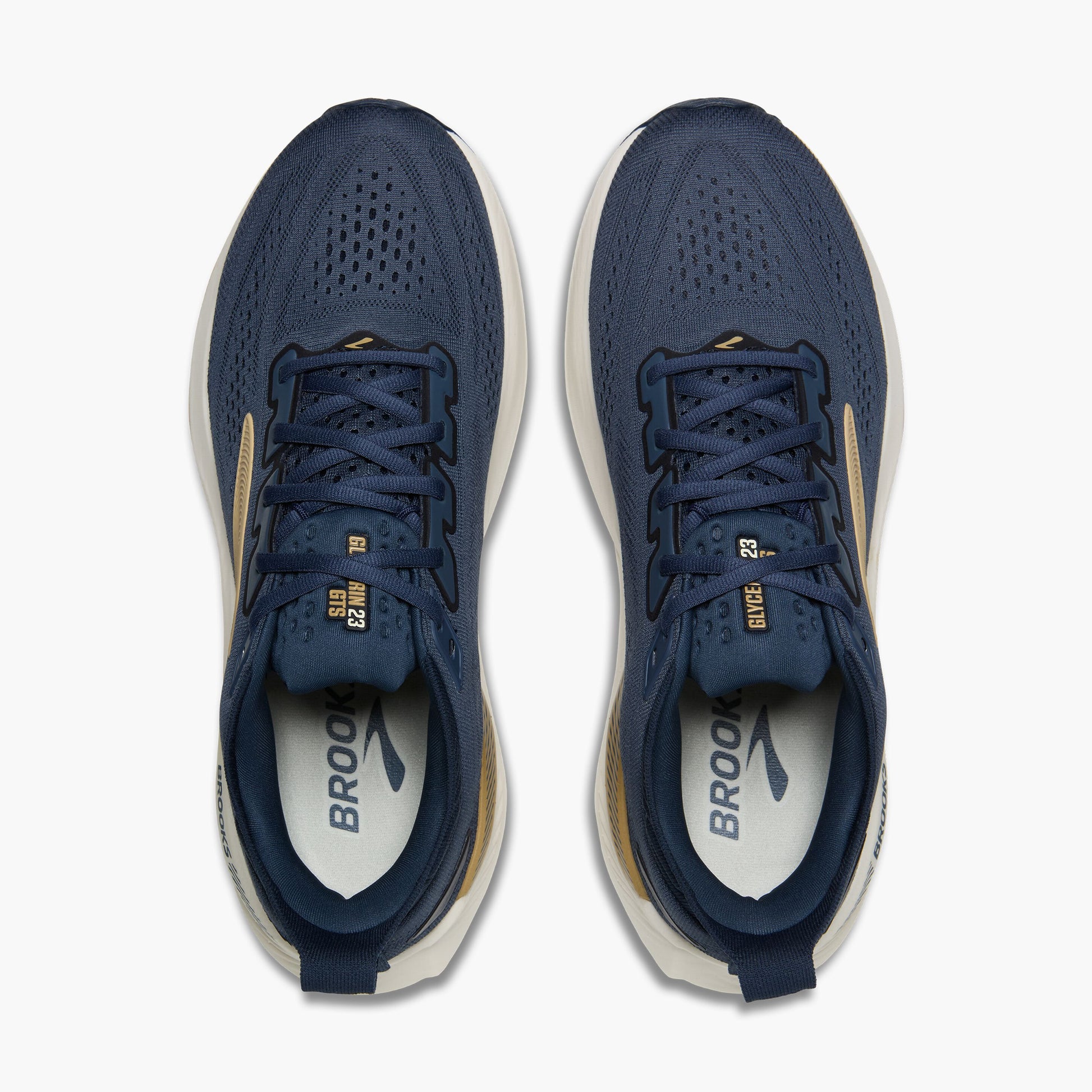 The Men's Glycerin GTS 23 running shoe features Brooks innovative GuideRails(TM) support system that keeps you comfortably in your stride while tuned nitrogen in the midsole provides plush landings and responsive toe-offs.